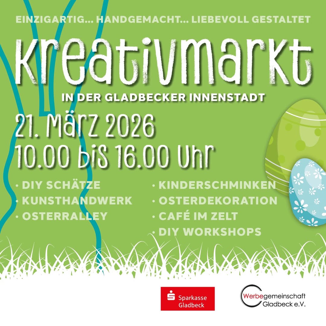 Herzliche Einladung zum Kreativmarkt am 05. April 2025 von 10:00 bis 16:00 Uhr in der Gladbecker Innenstadt. Gemeinsam kreativ sein: Brigitte Vollenberg und Christel Pollender präsentieren ihre Werke und begeistern mit Kunst und Literatur.